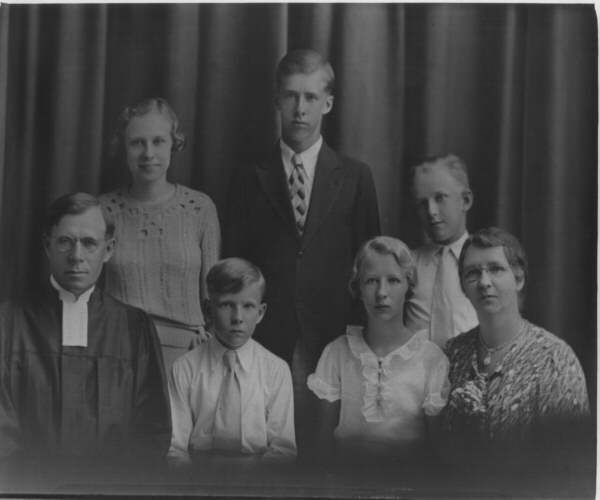 (Front)Rev. Manfred Gustaf Oskar Olson, James Walter Olson, Phillis Josephine Olson